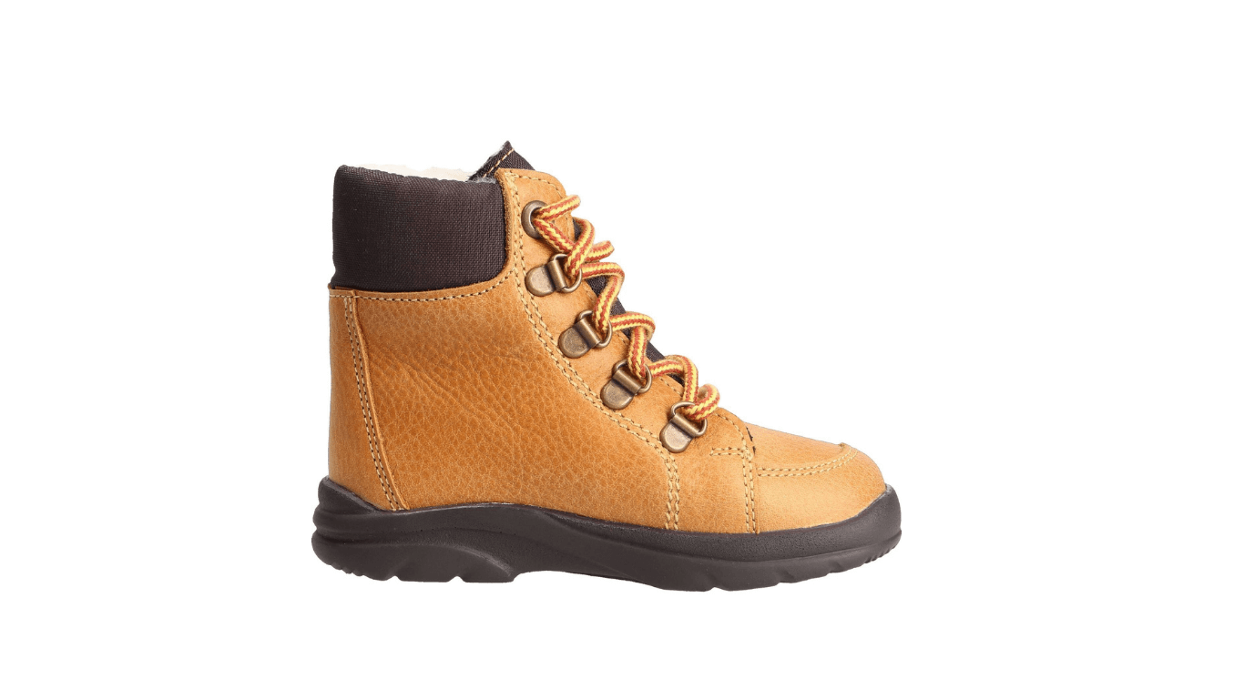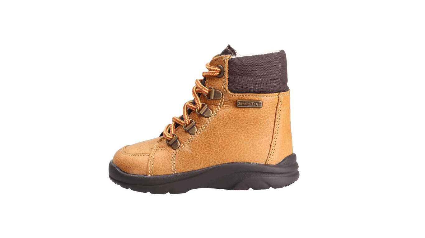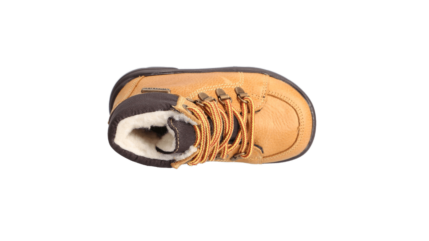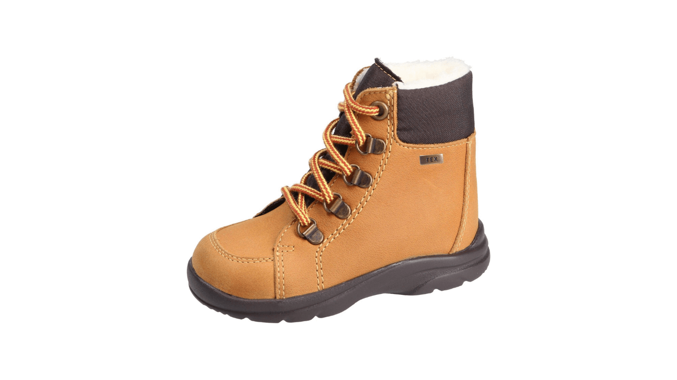 Овие детски зимски обувки се дизајнирани за сигурност и удобност во студени и влажни услови. Топлата кафеава боја, надополнета со контрастни врвки и потемни детали, им дава класичен и практичен изглед, погоден за секојдневно зимско носење.